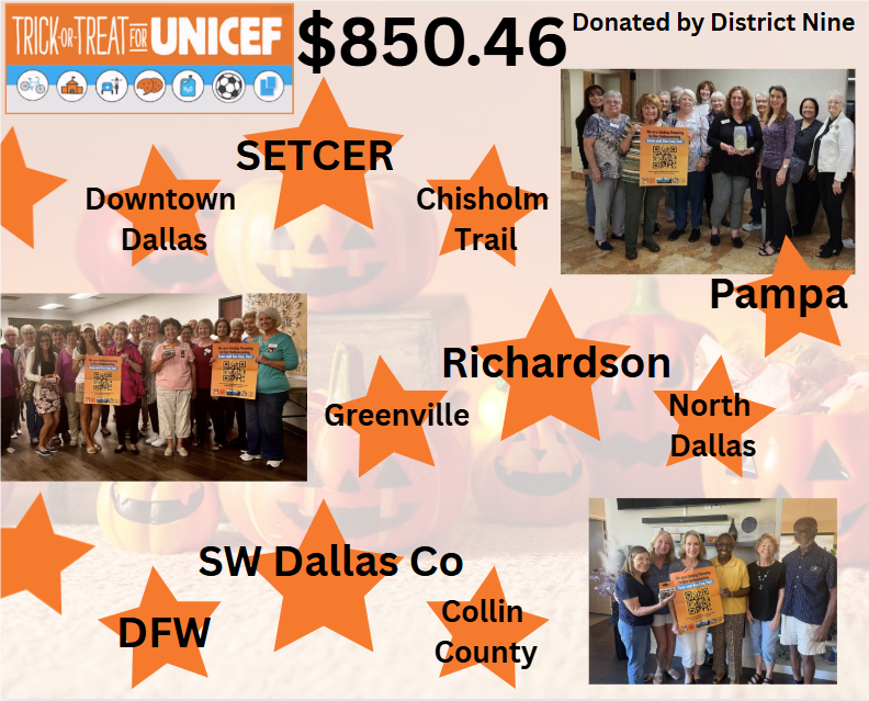 Altrusa District Nine extends special thanks to clubs supporting Trick-or-Treat for UNICEF by collecting loose change and donations at their October club meeting.