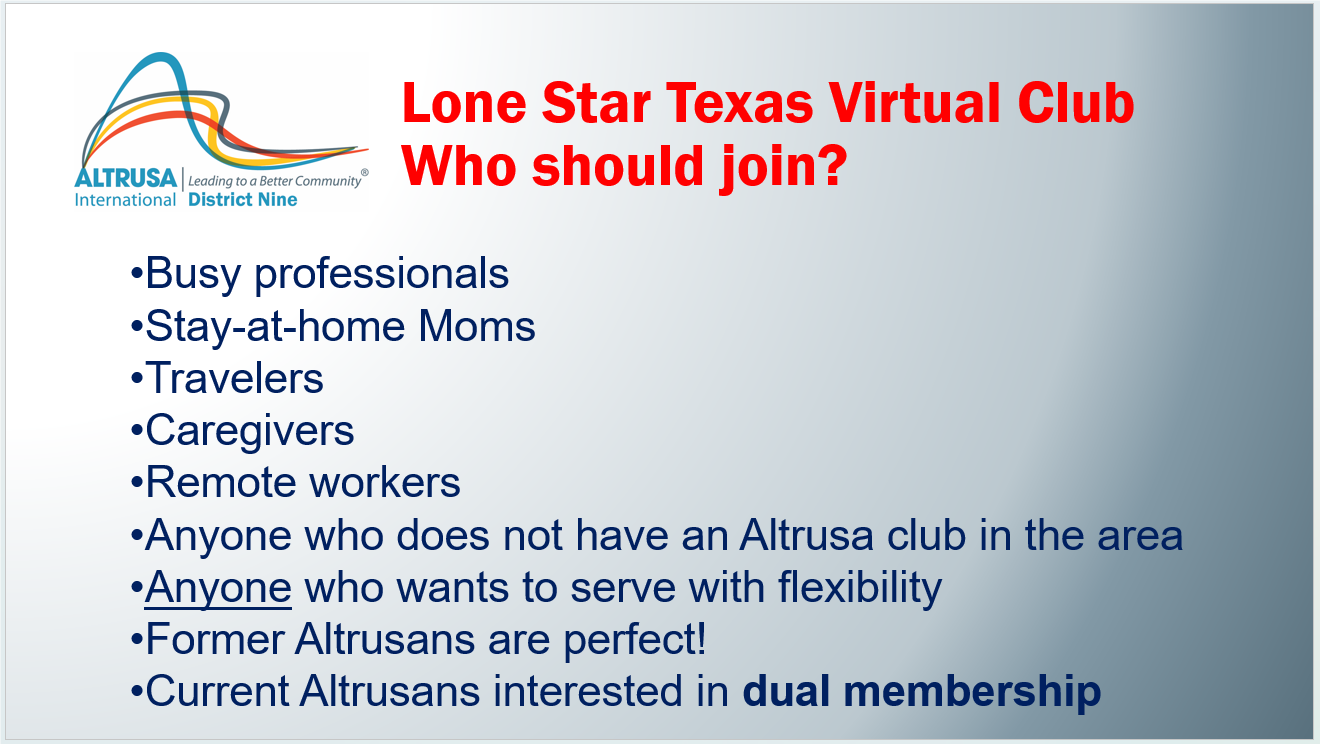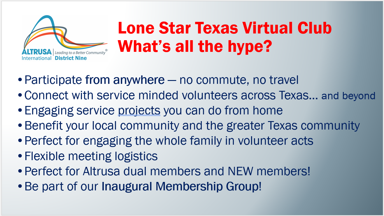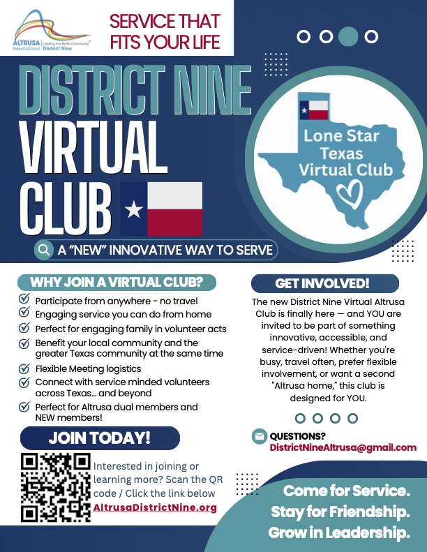 Join District Nine's NEW Virtual Altrusa Club!